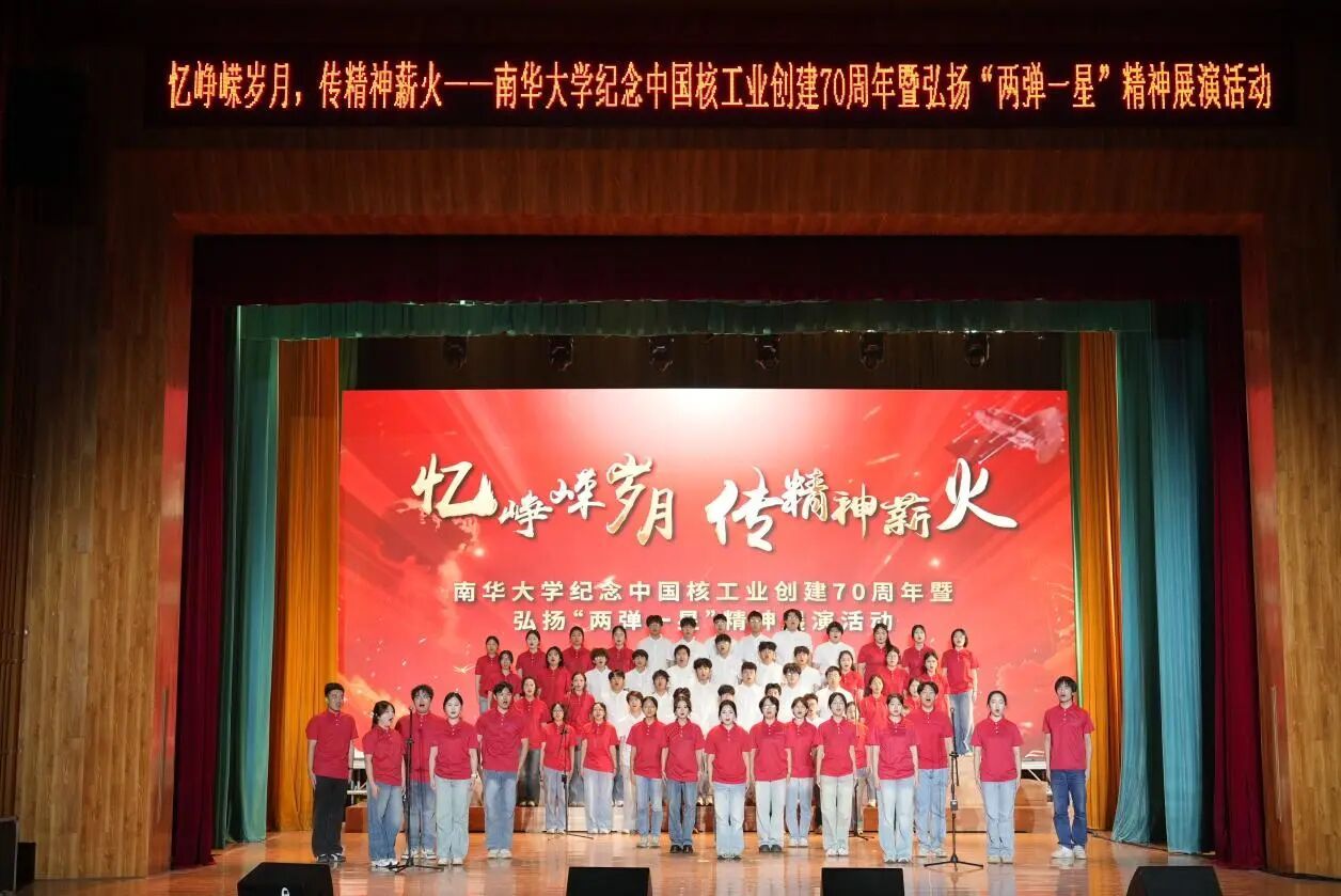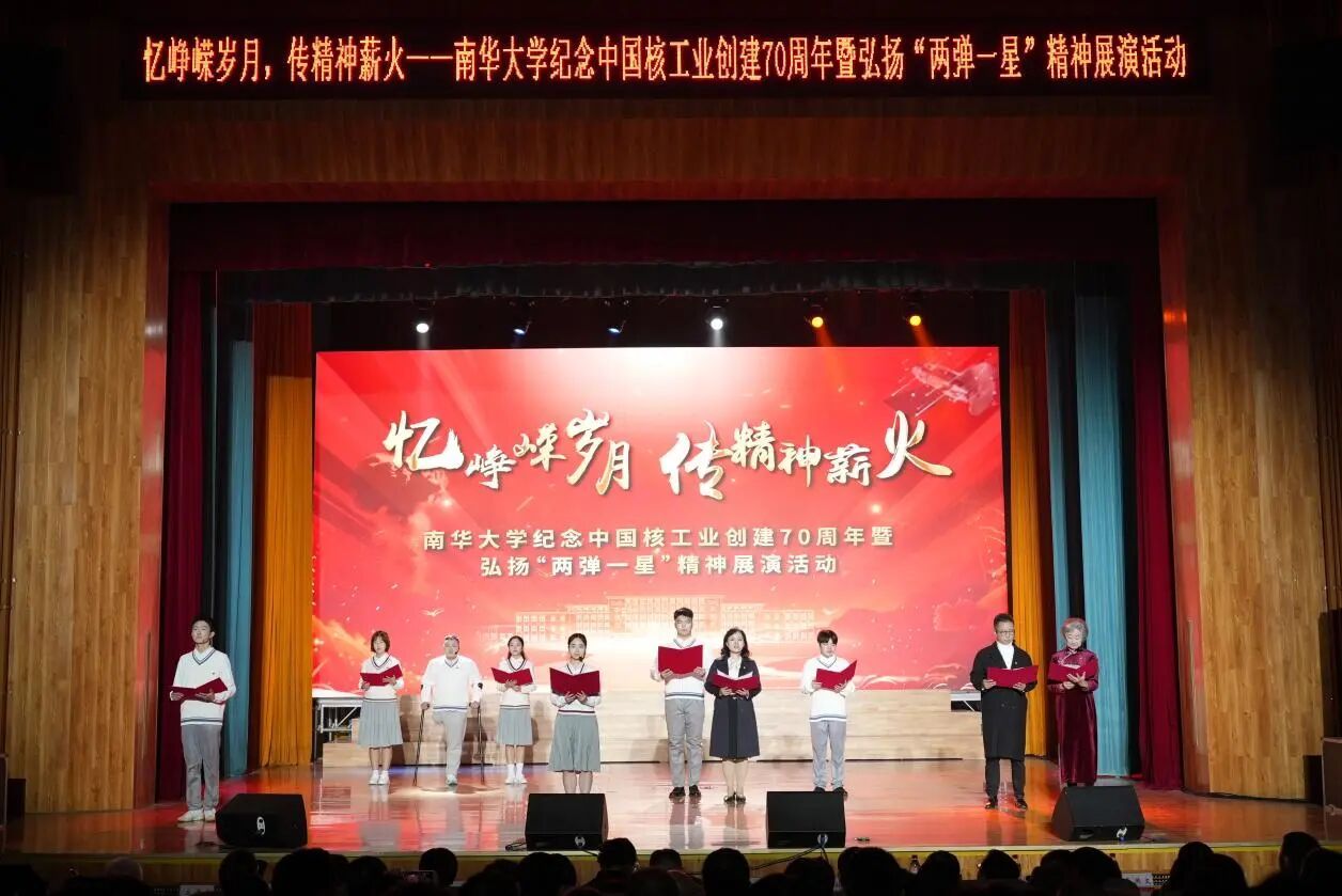 2025年11月22日,“忆峥嵘岁月,传精神薪火——纪念中国核工业创建70周年暨弘扬‘两弹一星’精神展演活动”在南华大学成功举行。活动吸引了来自清华大学、中核集团等39家高校及企事业单位的代表,与南华大学师生一同观看了这场由核科学技术学院师生自主创排的沉浸式演出。整场展演以艺术化的手法,生动再现了我国核工业波澜壮阔的奋斗史诗,深刻诠释了“两弹一星”精神的时代价值。