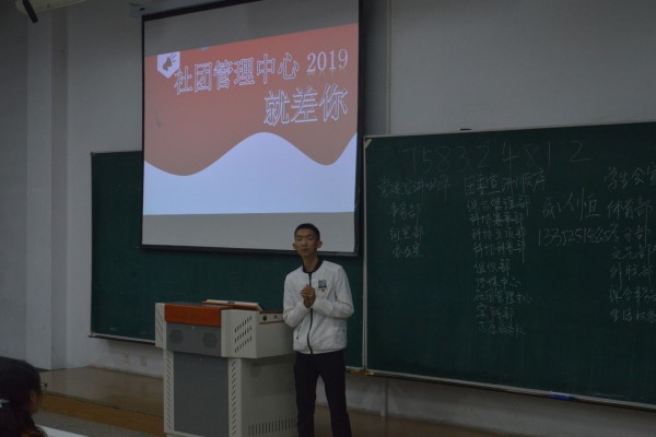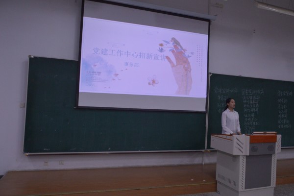 经过指导员简单的介绍后,宣讲会开始。党建中心、学生会、团委、宣传中心分别派代表进行招新宣讲。同学们不断听取着学长们对于部门的介绍,考虑着自己适合加入的部门。各个部门各出奇招,或是慷慨激昂的演讲、或是五彩缤纷的幻灯片、或是生动有趣的视频,无不吸引着新生们眼球。宣讲后当场分发志愿填报表,新生们积极讨论,认真思考并填写心仪的部门,学长学姐们积极地回答新生们的疑问,现场气氛热烈。
