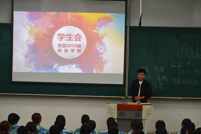 核学院学生会主席吴翰为新生讲解学生会的建设理念、部门组成、职责任务、意义,讲解学生会在大家四年生活中发挥的作用、提供的服务与帮助。学习部部长陈师讲解选择体育课、选修课的流程,并说明在入学初期如何选择选修课以帮助自己尽快适应大学生活。