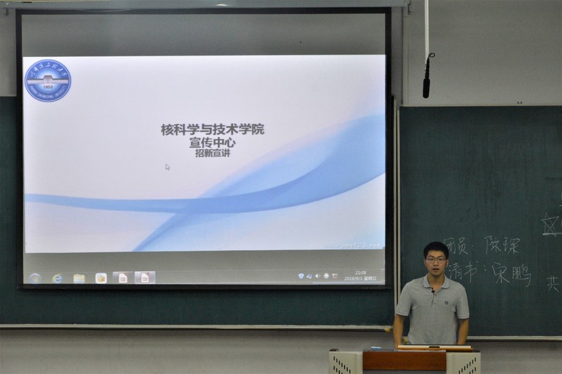 核学院宣传中心常务副主任贺渝为新生讲解宣传中心的建设理念、部门组成、职责任务、意义,向大家生动的介绍了宣传对消解公众“谈核色变”、盲目抵制核能源的误解的重要意义。