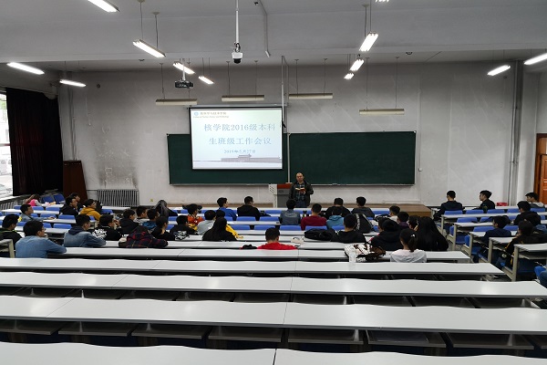 5月27日,核学院2016级本科生2019年春季学期5月班级工作会议于1号楼N101召开,2016级辅导员李灵东老师以及2016级各班班长、团支书、学习委员和寝室长参加会议。