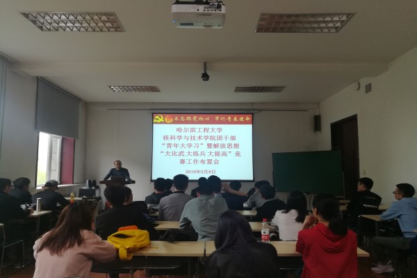 为落实校团委《关于开展哈尔滨工程大学团干部“青年大学习”暨解放思想“大比武 大练兵 大提高”竞赛实施方案的通知》的要求,5月8日核学院团委在31号楼370教室召开学院团干部“青年大学习”暨解放思想“大比武 大练兵 大提高”竞赛工作布置会,院团委书记李灵东主持会议,学院团委学生干部、团支部干部等参加会议。