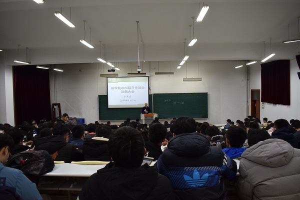 2019年1月3日晚7:00,核学院2016级本科生升学就业动员会议于1号楼N201教室召开。本次大会由2016级本科生辅导员李灵东主持,核学院2016级本科生全体参会。