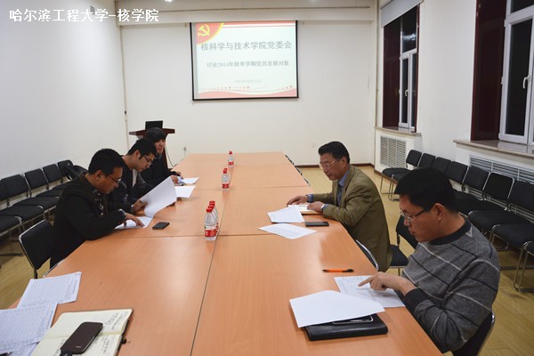 10月23日下午4时,核科学与技术学院党委召开党委会,审议2014年秋季学期党员发展对象。会议由学院党委书记郭黎滨主持,党委副书记刘振宇、副院长田瑞峰、党委委员曹欣荣出席会议,学工办主任刘正、辅导员李灵东列席会...