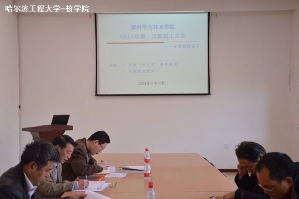 4月8日,核学院2015年度第一次教职工大会在31#370会议室召开,会议分两场进行,上午召开全体教授会议,下午召开全体中青年教师会议。核学院党委书记郭黎滨、副院长田瑞峰及学院全体教职员工参加。 &nb...
