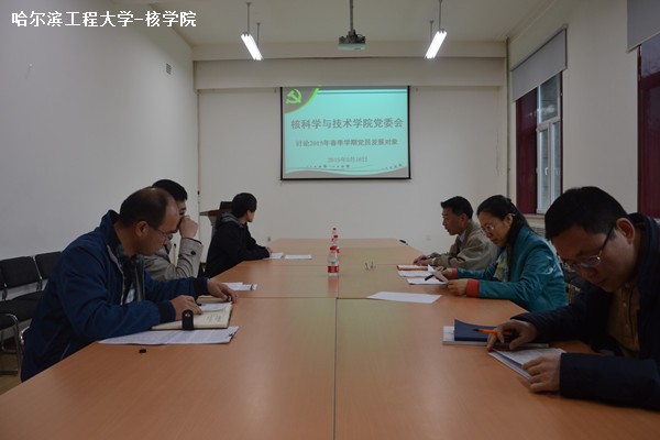 5月18日上午9时,核科学与技术学院党委召开党委会,审议2015年春季学期党员发展对象。会议由党委书记郭黎滨主持,副院长田瑞峰、高璞珍,党委委员曹欣荣出席会议,学工办主任刘正、党务辅导员李灵东列席会议。  ...