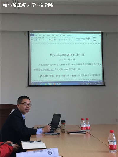 2016年3月23日,核化工系党支部会议暨专题组织生活会在学院会议室召开,会议由党支部书记马福秋主持,12名正式党员参加了会议。会议完善了核化工系党支部组织机构,讨论了本年度工作计划,并进行了“三严三实”、“两...