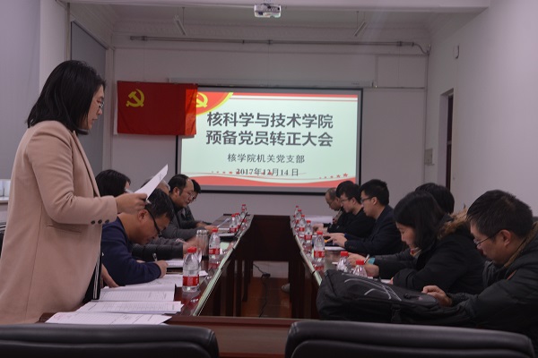 2017年12月14日下午三时,核科学与技术学院机关党支部全体党员大会在31号楼344会议室召开,预备党员王菲同志转正的工作进行了表决。参加会议的人员有12名正式党员,党员议会由机关党支部书记王海涛同志主持。 ...