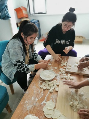 初进老师家门,同学们就感受到了扑面而来的热情,在一番准备之后,活动就正式开始了。活动期间,大家都非常热情和放松,老师和同学们都投入其中,有的同学负责擀面皮,有的同学负责包饺子,经过大家的努力,一个个奇形怪状的饺子出来了,有长的、扁的,花式也各不相同,不会包饺子的同学也在努力学习如何呈现一个更加美观的饺子。过程当中,老师和同学们有说有笑,谈论各种话题,场面十分热闹。