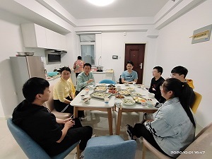 在举杯共祝双节之时,颜永得老师表示,非常高兴能够和大家有缘分在烟台相聚,课题组是一个非常团结的大家庭,希望同学们之间也能相互交流,相互促进,在大家庭里共同成长。最后,颜老师还讲到,本世纪只有四次双节,同学们能够在今天度过这个节日,一定有特别的缘分,希望同学们共同珍惜。随后,大家愉快地享用了这顿“缘分之宴”,在这期间,老师们和同学们进行了学习生活等方面的交流,同学们也感受到了来自课题组老师们的亲切关怀。