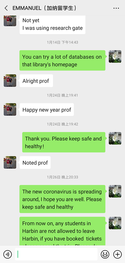 为发挥“一个支部就是一座战斗堡垒,一名党员就是一面旗帜”的作用,党支部党员多次联系未返哈教师和学生,了解身体状况,询问有什么困难,让他们感受到党的温暖。对于从外地返哈的2位教师,多次了解居家隔离状态,没有出现新冠肺炎的相关症状,其中薛云老师寒假回湖北孝感过年,面对疫情发展态势,果断于大年初一返回哈尔滨,居家进行隔离,采用网上购物等办法采买生活物资,严格遵守隔离要求,每日向单位和社区等部门汇报体温,发挥了党员的先锋模范作用。