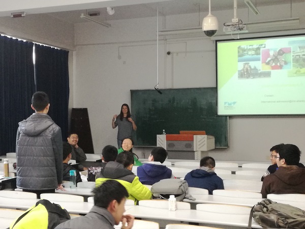 10月18日,法国IMT Atlantique(原南特矿业学院,今年与另外2校合并,改名为IMT Atlantique,由此排名大幅提升)国际处白丽丝女士来访,在21B215教室做了双学位留学项目宣讲。