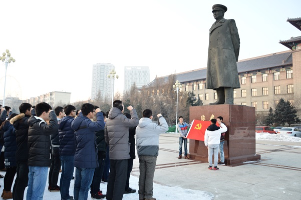 随着的庄严的国际歌,主持人宣布活动正式开始。主持人首先邀请郭黎滨同志为全体人员讲话。郭黎滨同志以他的亲身经历讲解了他对党的认识,并表达了他对全体预备党员的深切期待。随后刘喆琼同志讲话,她也通过讲述她的个人经历,指出每位共产党员都应该坚定信念,脚踏实地,不忘初心,继续前行。随后在陈赓雕像前举行了预备党员宣誓仪式,由郭子方同志担任领誓人,每一位预备党员在党旗下都向党发下庄严的誓言。之后,人文马克思主义学院凌梦同志和核学院刘琪同志在会上发表宣誓感言。紧接着,全体预备党员围绕“纪念一二·九弘扬哈军工精神”这一主题展开了讨论,并积极地提出了自己的看法。最后伴随雄壮的国歌,主持人宣布活动正式结束。
