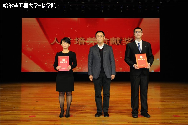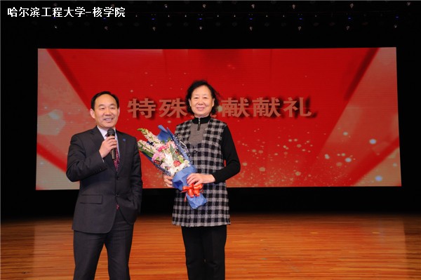 学院一直与核工业相关研究、工程技术单位保持良好的交流与合作,逐步形成了人才基地与核工业企业“人才培养链”,为我国核工业输送了大批高水平创新型人才。中国科学院等离子体物理研究所、中国船舶重工集团公司第七一九研究所和中国核动力研究设计院在学院设立了奖学金,激励了学生奋发图强,为祖国的核事业发展贡献智慧和汗水,也为学生更加了解核科学与技术架设起了桥梁,晚会现场颁发了三个研究单位奖学金。晚会设置了感恩环节,由副校长张志俭教授向杜泽教授夫人徐尔贤献花,感谢杜泽教授为核科学与技术领域的发展做出的卓越贡献。随后颁发了国际合作贡献奖,以奖励吉川荣和教授为学院引进人才、拓展国际合作与交流关系做出的重大贡献。最后颁发了人才培养贡献奖,分别奖励了中广核育才优秀教师,研究生优秀指导教师,本科生、研究生优秀授课教师、优秀青年主讲教师和学生管理贡献奖,共有19位老师获得了此奖项。
