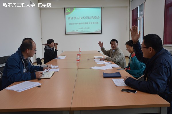 | 5月18日上午9时,核科学与技术学院党委召开党委会,审议2015年春季学期党员发展对象。会议由党委书记郭黎滨主持,副院长田瑞峰、高璞珍,党委委员曹欣荣出席会议,学工办主任刘正、党务辅导员李灵东列席会议。