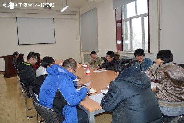 | 12月23日下午2时,核学院于31#343会议室举办机关人员年度工作考核汇报会,核学院党委书记郭黎滨、党委副书记刘振宇及学院综合办、科技办、教务办和学工办全体工作人员参加会议。