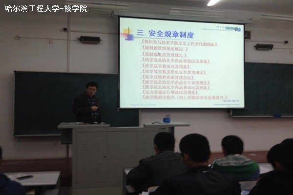 此次新生入学教育主要围绕核学院的实验室管理事项及教务管理情况等内容进行讲解。核学院田峰副院长首先上台,介绍了实验室的特点、安全事故、安全规章制度等方面内容。田院长针对实验室种类多并且存在放射源、高压电等特点进行解说。同时简单介绍了一些实验事故来要求同学们加强安全意识,严格认识到一些已经废弃的实验器材所存在的安全问题,避免人身安全、设备安全遭到侵害。最后田院长也给同学们介绍了国内其他高校的重大安全事故,说明了安全规章制度,要求全体同学在实验室中坚决遵守,保护人身安全。