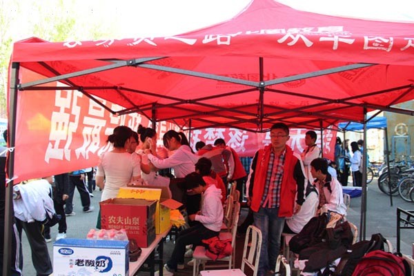 为了给运动员提供一个良好的休息环境,核学院在体育场南侧设置了休息帐篷,并安排志愿者在现场对运动员进行引导。我“核”你志愿者服务队在运动会上为运动员与观众服务,清理会场垃圾,保持现场清洁,是赛场上一道流动的风景线。
