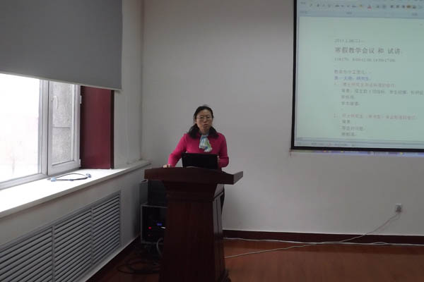 高璞珍副院长随后讲话,她向参会人员介绍了学院教务办的分工变化,新修订的研究生毕业标准,专业学位研究生的实践安排,研究生国家奖学金的评定方法,本科生专业实习的安排和课程设计的要求等,并与参会人员讨论了教师队伍的建设,青年教师的培养,学院国际交流的情况,学院对教学秩序的改革措施。最后对本学期的教学工作进行了布置。