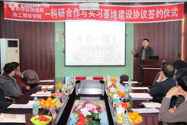 | 12月14日上午,核学院与省科学院技术物理研究所签订科研合作与实习基地建设(框架)协议。签约仪式在省科学院技术物理研究所2楼会议室举行。省科学院技术物理所所长倪靖滨、书记张丽芳、副所长梅雪松、副所长赵弘韬等主要领导及各研究室主任,核学院院长张志俭、党委书记郭黎滨、副院长赵强、科技办主任马福秋及李桃生教授参加签字仪式。我校科学技术研究院副院长兼黑龙江省科学院院长助理赵立涛出席签约仪式并主持会议。