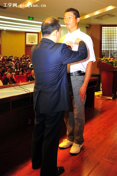 最后,院长张志俭为新生代表李磐同学佩戴校徽。