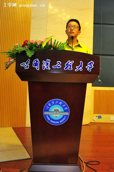 2012级新生、军训优秀学员魏君翰代表2012级185名新生发言,首先感谢学院领导在军训期间对同学们的关心和照顾。最后庄重承诺,会好好学习,不辜负学院的期望。