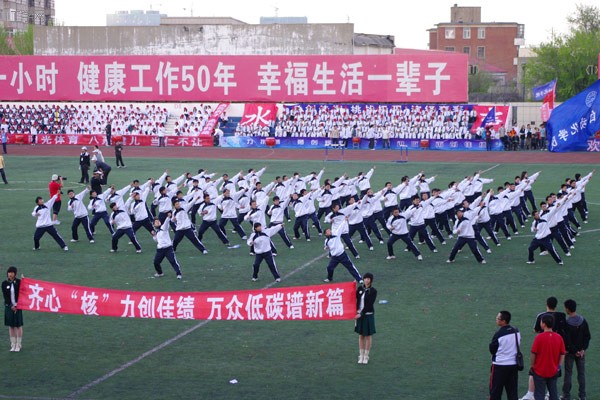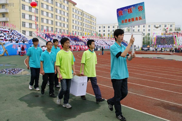 我院我“核”你志愿者服务队在运动会上为运动员与观众服务,清理会场垃圾,保持现场清洁,是赛场上一道流动的风景线。我院是唯一为大会呈现两次集体表演的单位,广播操、集体舞精彩亮相,展示了我院学子的青春与激情。同时院领导、教授们率先垂范,与广大教职工克服参赛人数少等困难,团结一致,认真训练,积极报名参与各类大众项目,在部分项目发挥出色,取得教工10人11足第一名,教工100米定向第二名的好成绩。