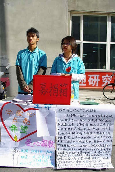 10月6日上午,核学院为张永同学筹集到了第一笔捐款。此后,我院向全校师生发出捐款倡议,并于6日至9日在大学生美食城、美食广场、31号楼等处开展了主题为“爱心延续生命”的爱心捐款活动。这一活动在全校范围内引起了巨大的反响。