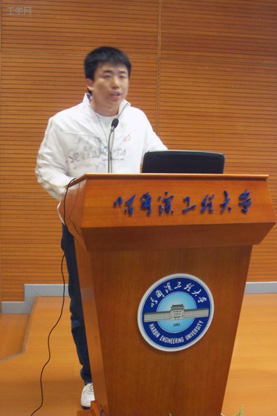 2010届联合培养班班主任朱广跃老师、刘正老师、2009届联合培养班准员工哈尔滨地区负责人罗帅等担任评委。来自我校与哈工大的13位同学参加了演讲比赛。参赛作品主题丰富多样,有强调个人修养与素质的《素质最差的一面决定发展》、有表达对中广核热爱的《致广核的一封情书》、有张扬青春梦想的《梦想点亮青春,激情成就辉煌》等等,其中,来自中国地震局工程力学研究所的胡长理做了题为《爱心广核 金色梦想——汶川地震应急感想与未来展望》的报告,把现场观众带回大地震那段刻骨铭心的日子,引人深思。